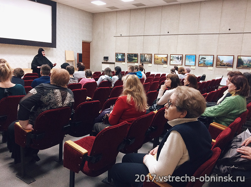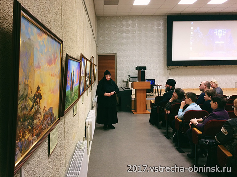 На открытии выставки присутствовали учащиеся обнинских общеобразовательных школ, люди разных возрастов и профессий, интересующиеся живописью. Организатор кинофестиваля «Встреча», монахиня София Ищенко провела небольшую экскурсию по выставочному залу. Она рассказала интересные факты, помогающие лучше понять задумку каждого отдельно взятого художника.